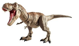 Jurassic World Bite 'N Fight Tyrannosaurus T-Rex.Experience Jurassic World dinosaur battle play in a whole new way! This larger-scale Bite 'N Fight Tyrannosaurus Rex has articulation and dual-button activation for fierce battle action! Push the back button on the Tyrannosaurus Rex and the tail strikes; press the front button and its head lunges forward with biting action and turns approximately 90 degrees. The harder you press the front button, the stronger the bite force becomes! You can also press both buttons at the same time for dual tail and head-striking action! This fan-favorite character has movie-inspired sculpting, an articulated head and tail, authentic color and realistic texture. Recreate all the epic Jurassic World battle-action scenes with this Bite 'N Fight Tyrannosaurus Rex—but watch out—this Tyrannosaurus Rex has a huge BITE and swinging tail STRIKE! Comes with a cool Dino Rivals collector card detailing the dinosaur's key battle stats and attributes. For more dinosaur fun, download the Jurassic World Facts app (Android and iOS) to scan and watch your dinosaur come to life, learn attack facts, compare stats and more!